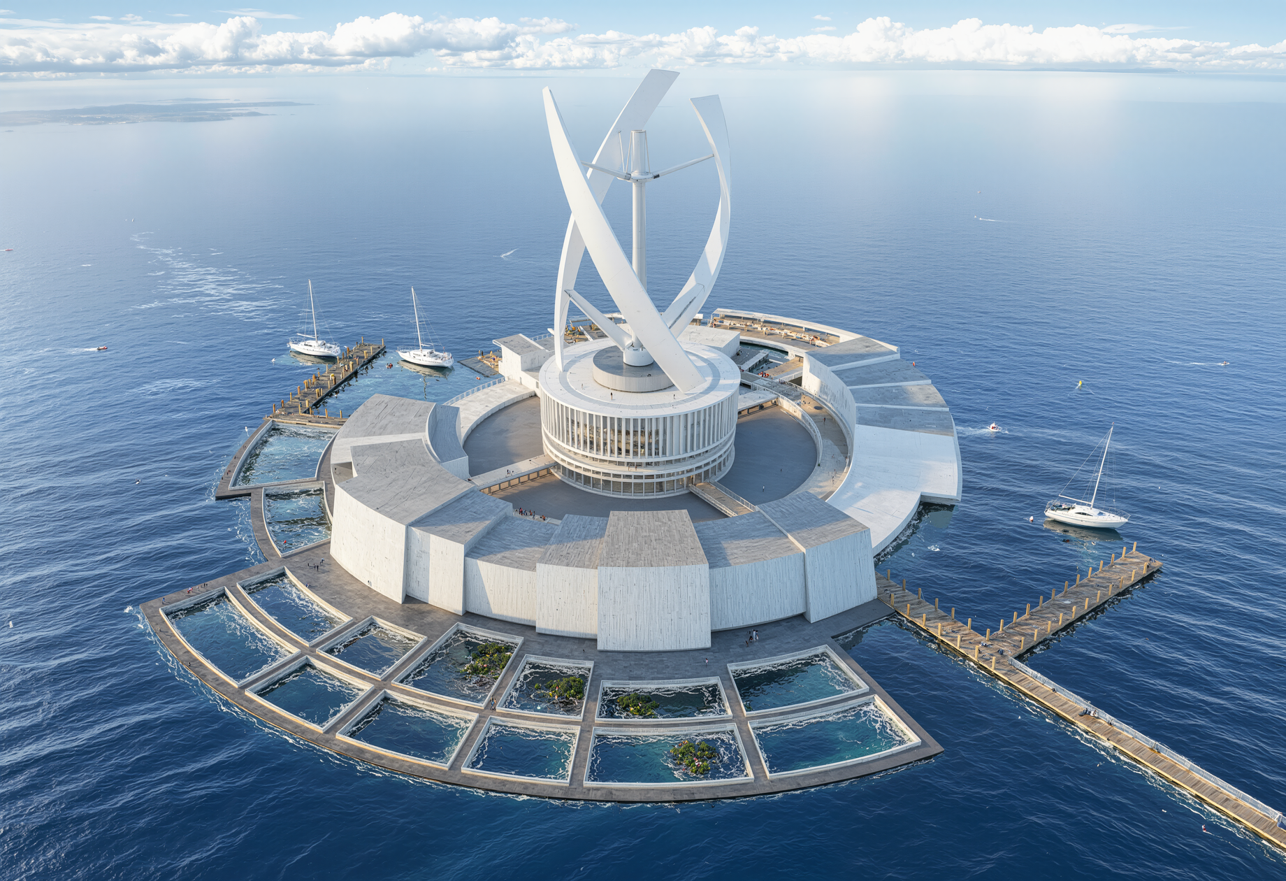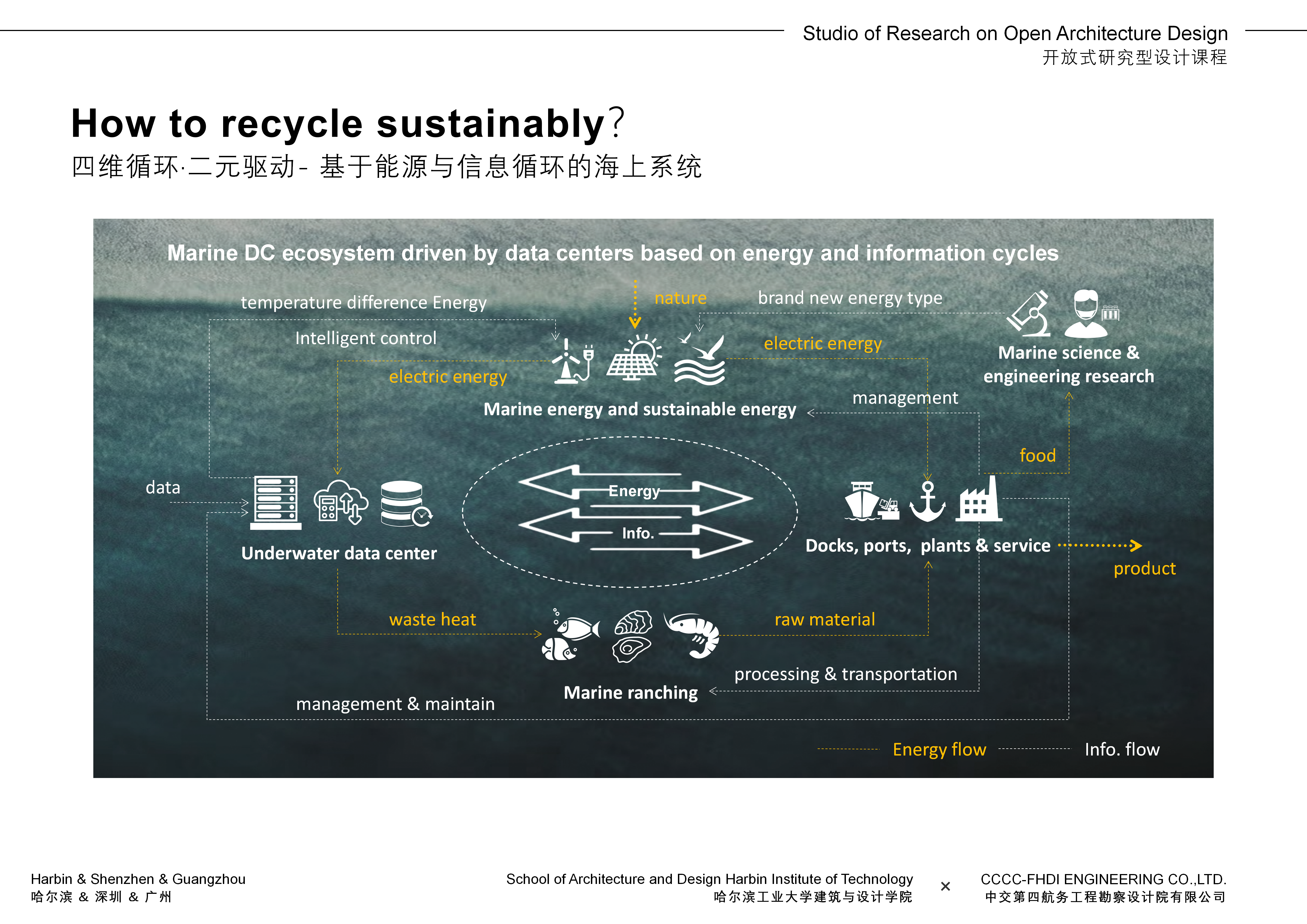 This project explores a self-sufficient oceanic system driven by underwater data centers, integrating energy flow, information flow, and marine production into a four-dimensional circular model. The core concept: