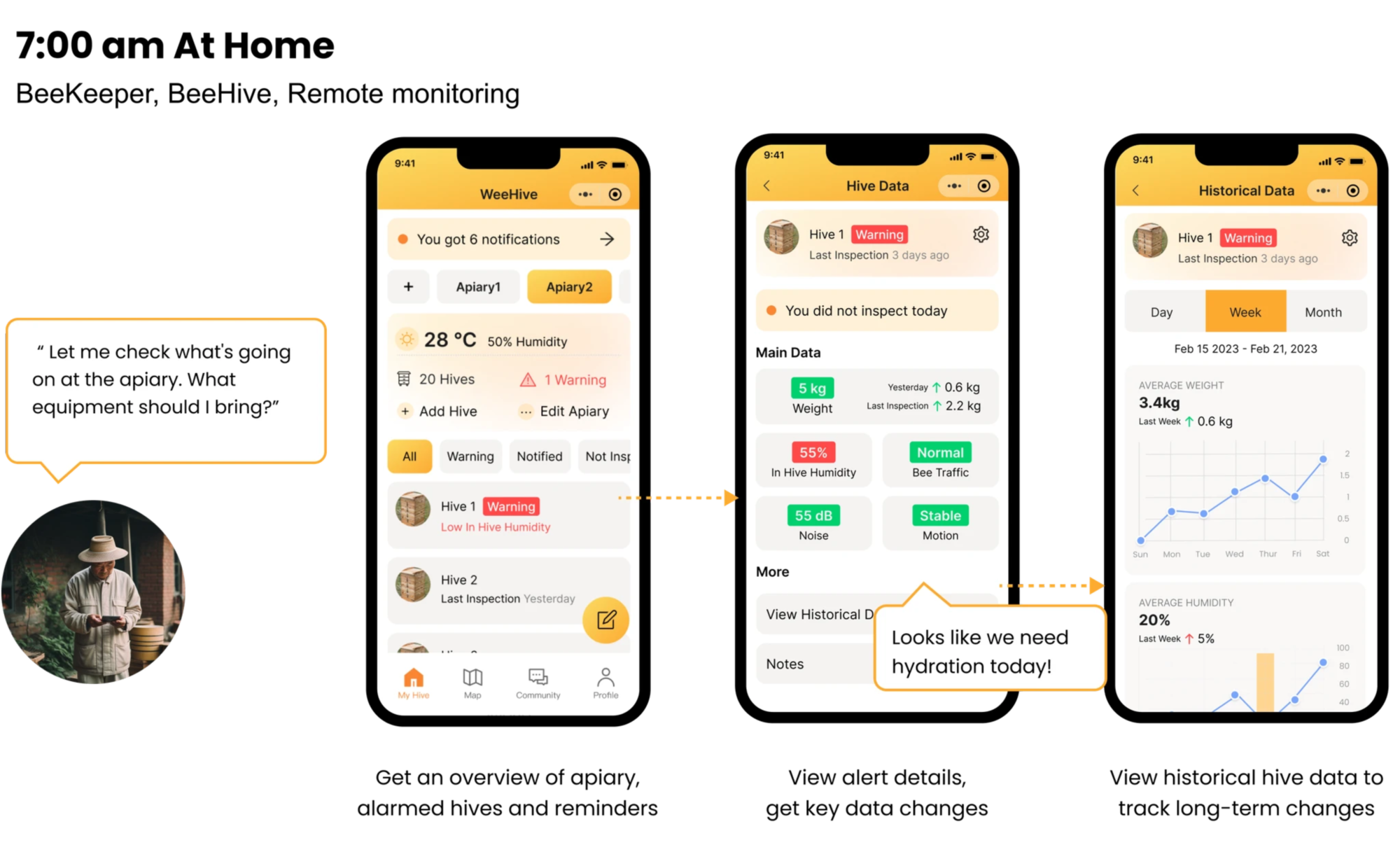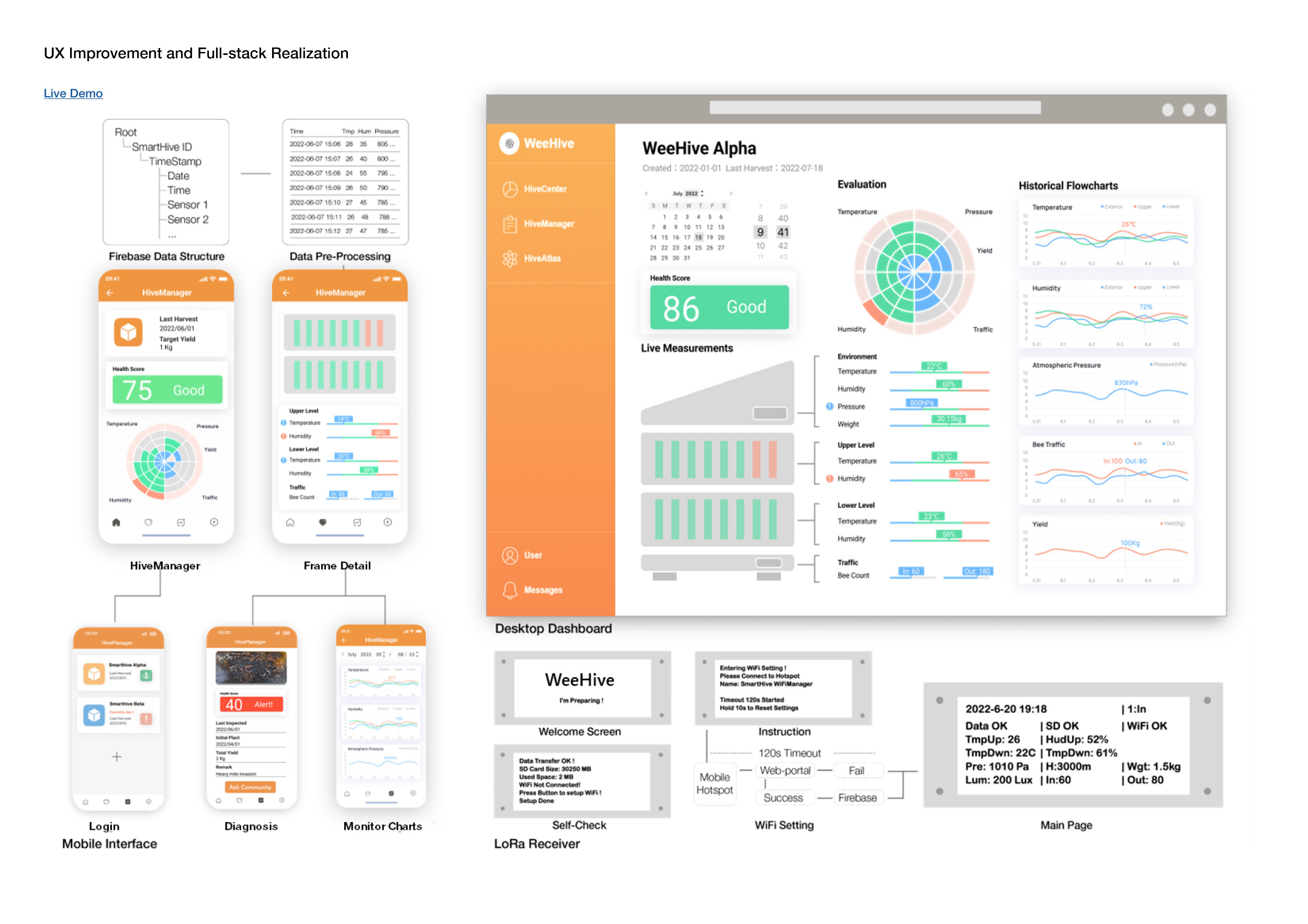 WeeHive is an innovative smart beekeeping platform designed to cater to the needs of beekeepers in China. The platform consists of a bee hive monitoring hardware system and a user-friendly WeChat mini-program that helps beekeepers monitor Bee hive data.