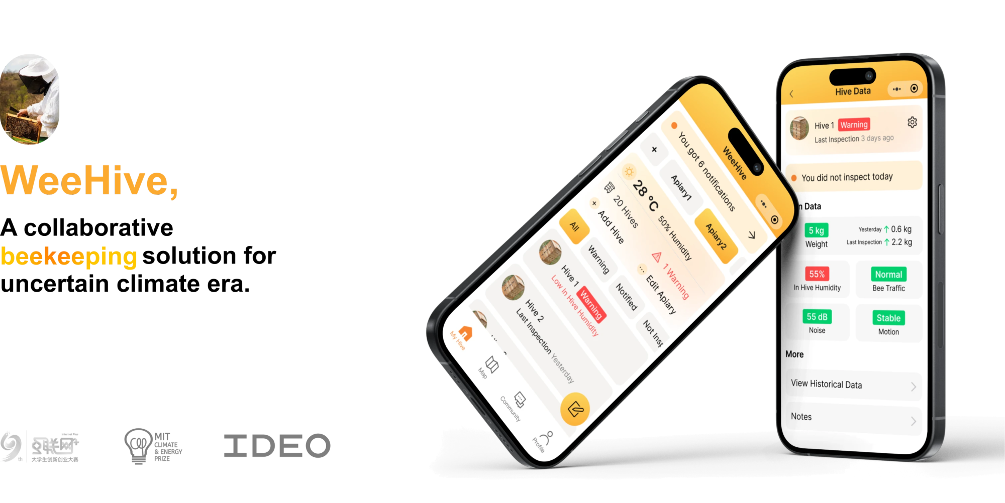 WeeHive won the 2023 Young Climate Prize, 2023 China Internet Plus Competition Bronze Price, and the project is selected to be presented on IDEO and MIT Climate Energy Price Conference. Now it received MIT Sandbox Innovation Fund and continue developing to the next phase.